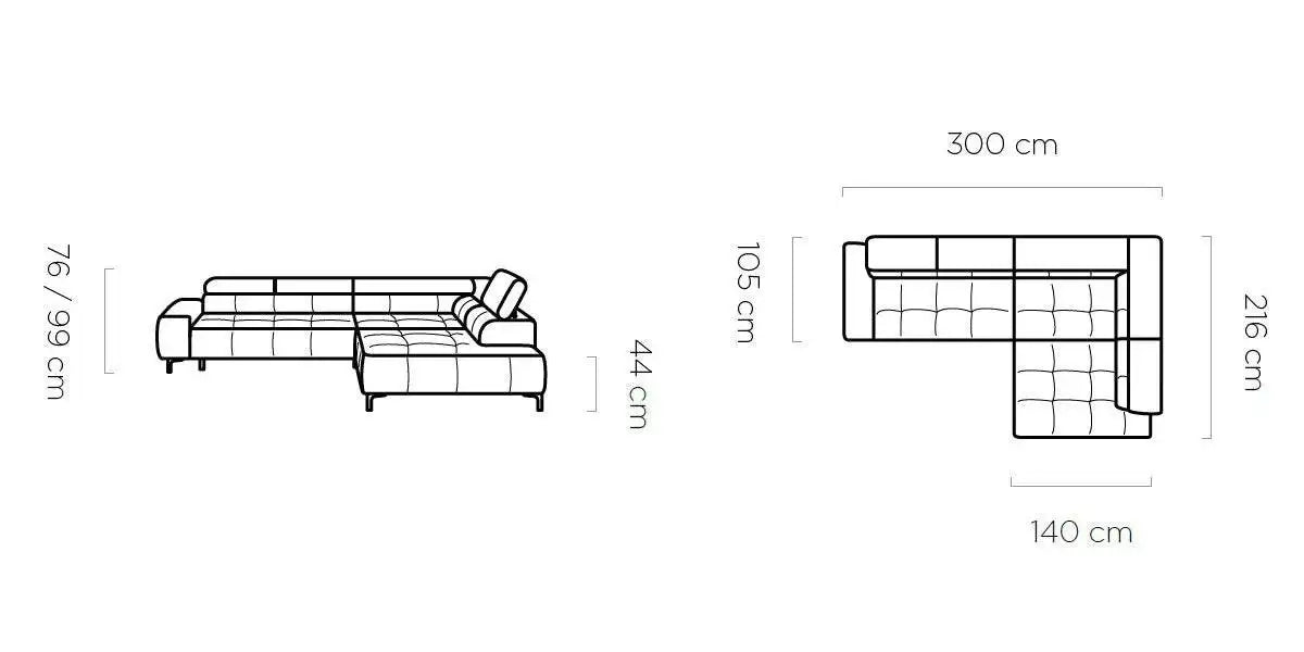 Crafted with a pine wood frame and supported by black metal legs (15 cm height), Plaza L Corner Sofa Relax combines structural durability with a sleek appearance. The seat is filled with highly elastic foam and zigzag springs, providing optimal support for long hours of lounging. Perfect for modern interiors, this sofa adds both style and flexibility to your home.