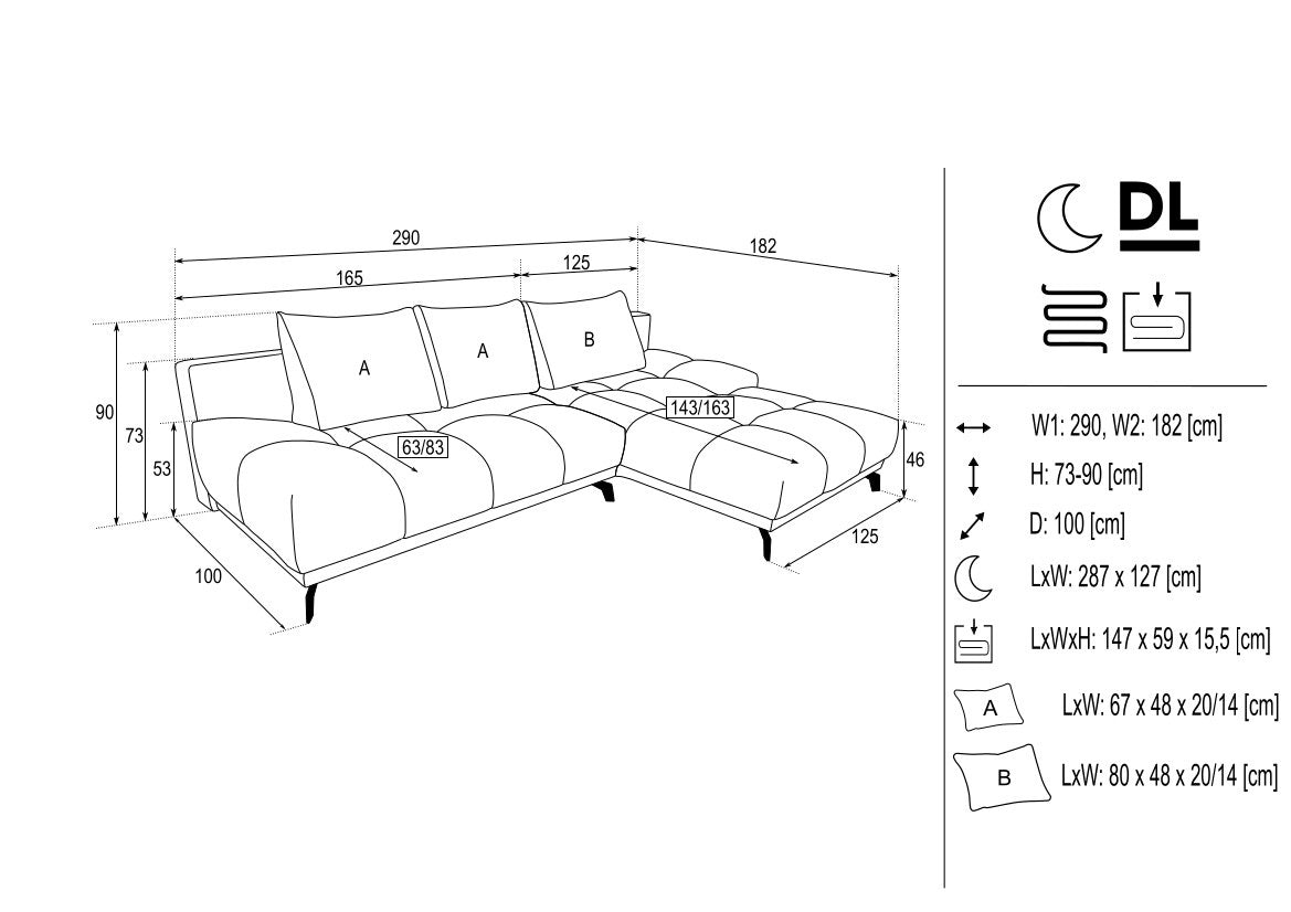 • Corner sofa with integrated sofa bed function (DL mechanism)