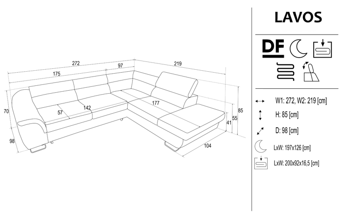 Designed for modern living spaces that demand both comfort and versatility, the Lavos corner sofa bed combines generous seating with advanced functionality. Its spacious layout, integrated sleeping function and built-in storage make it an ideal solution for everyday use as well as overnight stays. Adjustable headrests and supportive cushioning ensure comfort in every position, while the clean, contemporary form fits effortlessly into modern interiors.