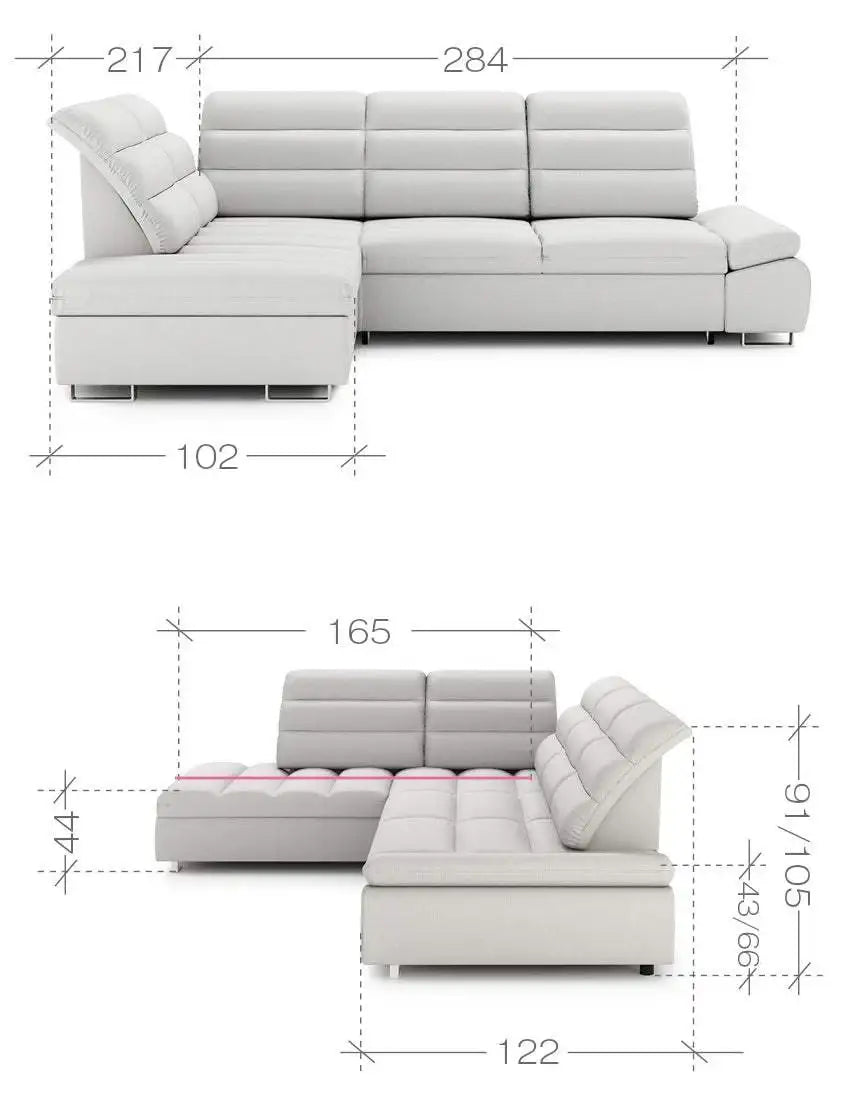 The Roman II Corner Sofa Bed with Storage is a versatile and stylish solution designed for modern living spaces. Combining generous seating, clean contemporary lines and an efficient Delphin-type sleeping mechanism, it transforms effortlessly from a comfortable corner sofa into a convenient bed for overnight guests. This multifunctional design makes it ideal for family homes, apartments and multifunctional rooms.