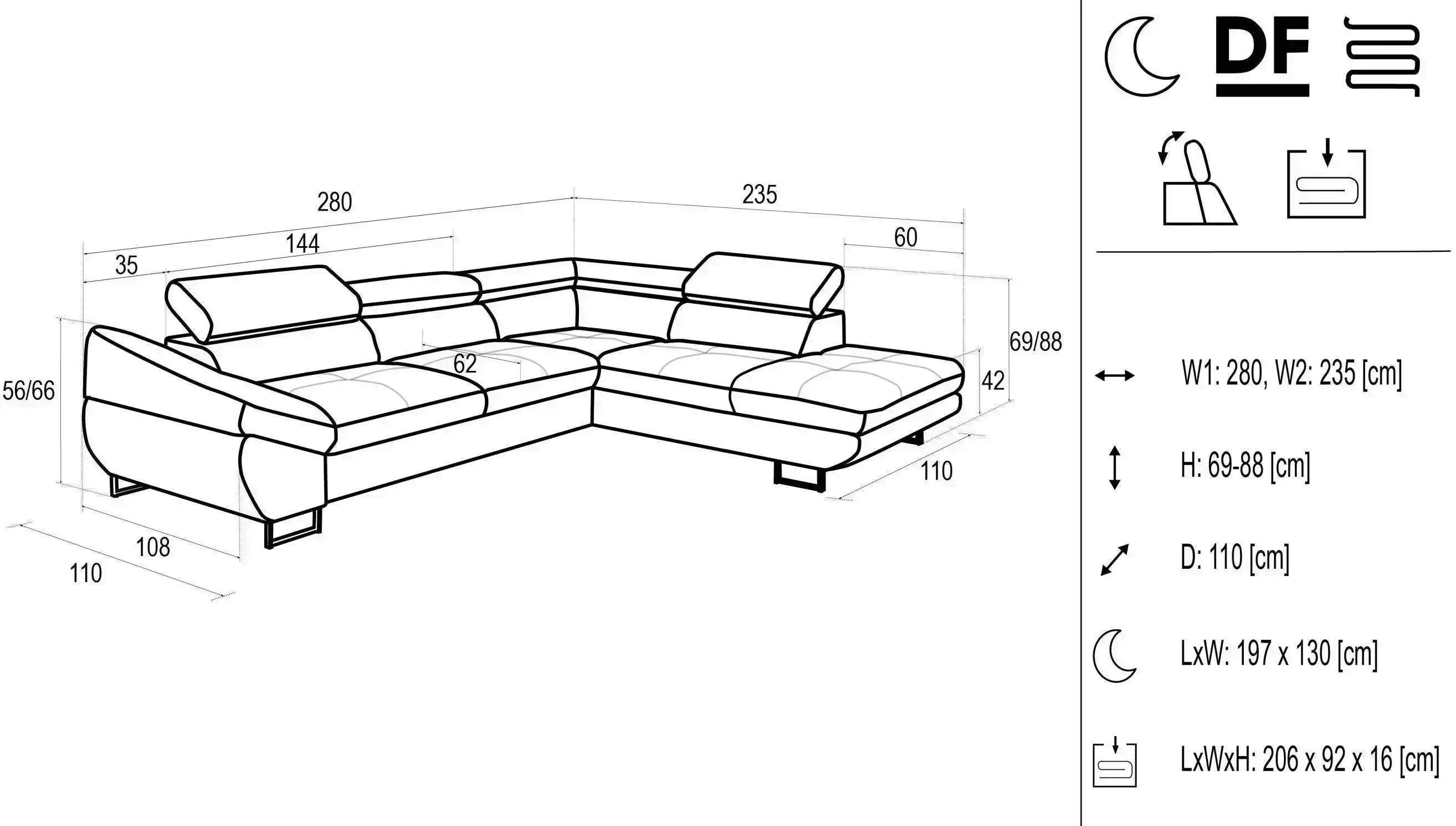 • Corner sofa with integrated sofa bed function (DF mechanism)
