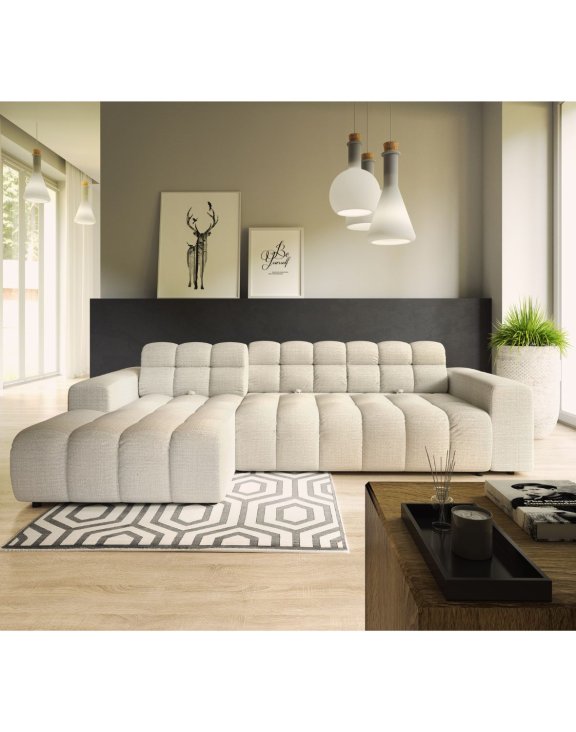 The Brello Corner Sofa features a sturdy Beech Wood frame combined with highly elastic foam and zigzag springs for superior comfort and durability. Adjustable backrests and a seat depth ranging from 58 to 87 cm offer personalized seating support. With foam-filled armrests and a spacious ottoman width of 108 cm, this sofa is designed for relaxation. Measuring 297 cm wide, 177 cm long, and 84 cm high with a seat height of 42 cm, it provides ample space and ergonomic comfort for your living area.