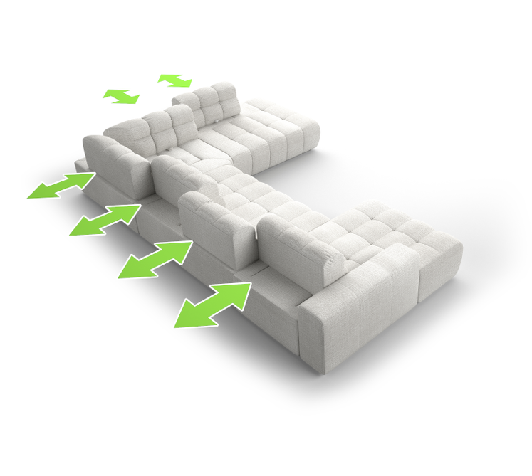 The Brello U shape Corner Sofa offers versatile comfort with adjustable backrests and a sturdy beach wood frame. Its highly elastic foam and zigzag springs ensure lasting support, while foam-filled armrests add extra cosiness. Generously sized at 400 cm wide and 263 cm long, it includes a spacious ottoman with ergonomic dimensions. Designed without a sleeping function or bedding storage, this sofa is perfect for relaxing and socializing in style. Choose from a wide range of upholstery fabrics to match your home’s decor.