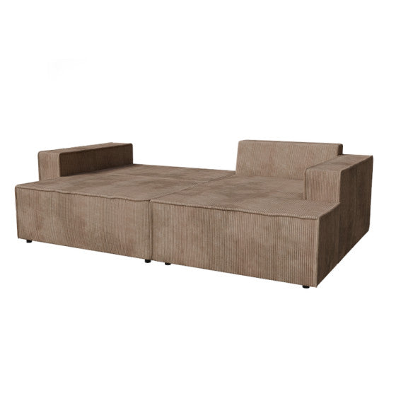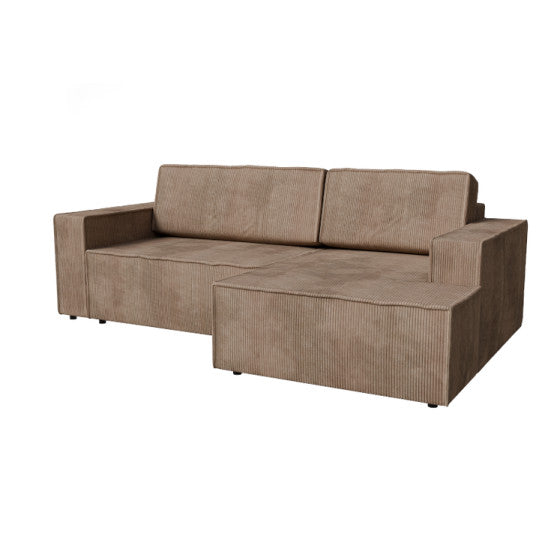 The Comi Corner Sofa Bed with Storage combines comfort and practicality with a sleeping function and ample bedding storage. Upholstered in your choice of fabrics, it features a sturdy beach wood frame and supportive foam armrests. The seating uses highly elastic foam and zigzag springs for lasting comfort. Measuring 245 cm wide, 149 cm long, and 81 cm high, it offers a spacious sleeping area of 196 cm by 126 cm, making it ideal for guests or everyday relaxation.