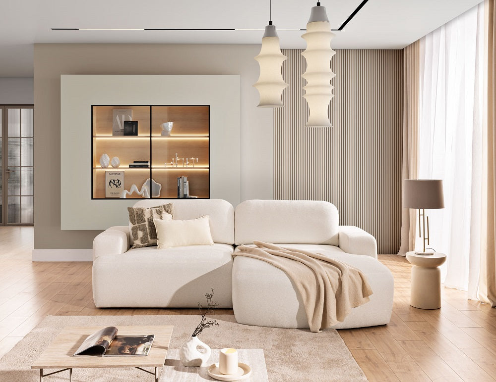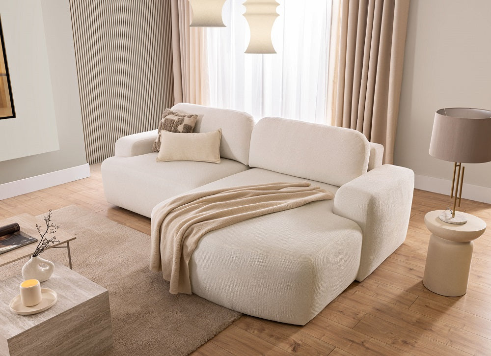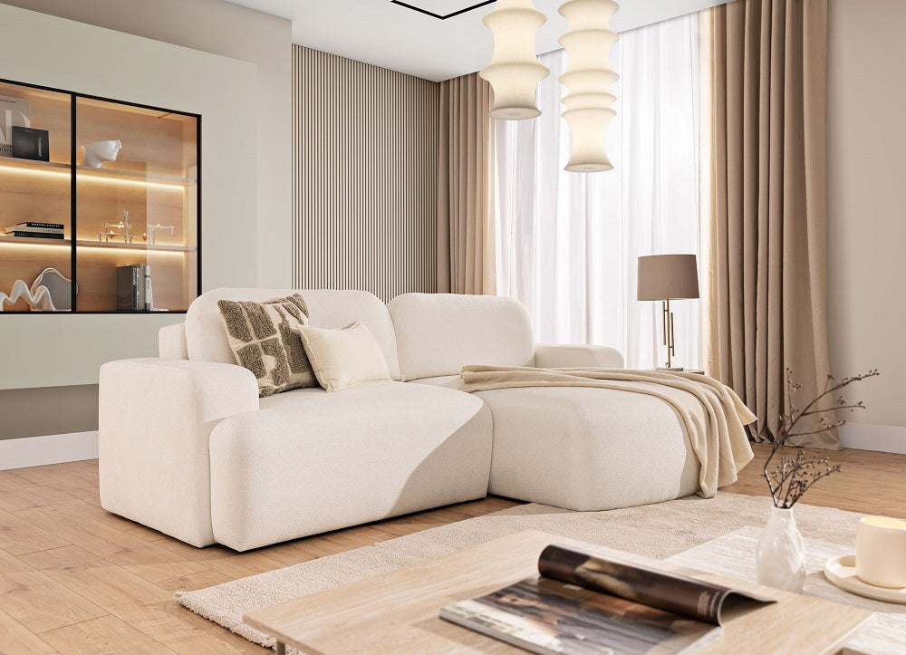 The Dover Corner Sofa Bed with Storage combines comfort and practicality. Featuring a sleeping function with a DL layout and a spacious bedding container, it’s perfect for overnight guests. The frame is crafted from durable Beech Wood, while the seating includes highly elastic foam and zigzag springs for lasting support. Upholstered in your choice from a wide range of fabrics, this corner sofa measures 262 cm in width, 147 cm in length, and 90 cm in height, with a seat depth of 56 cm and seat height of 48 cm. Note: small cushions shown are not included.a