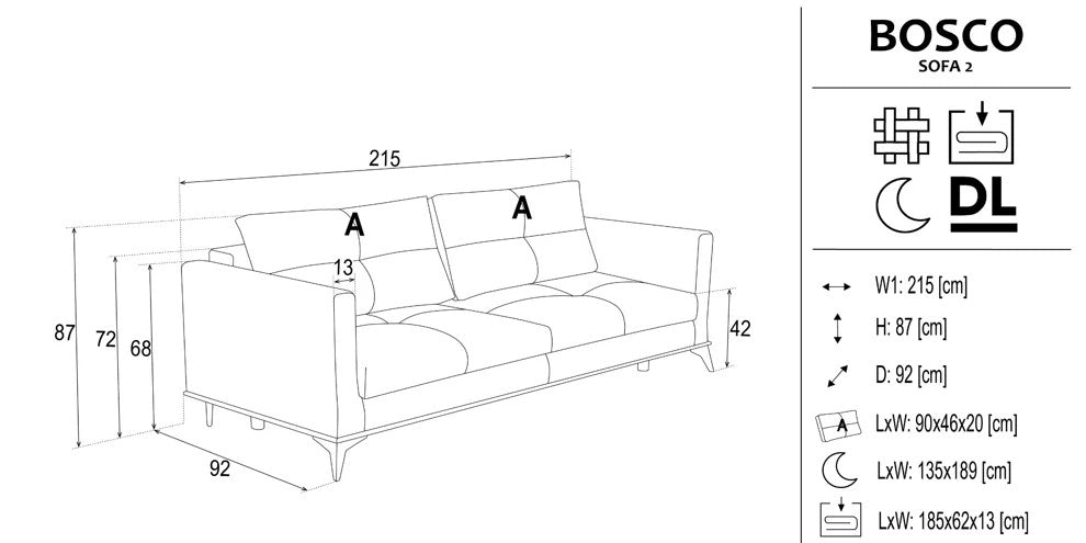 • DL mechanism allowing smooth and easy conversion from sofa to bed