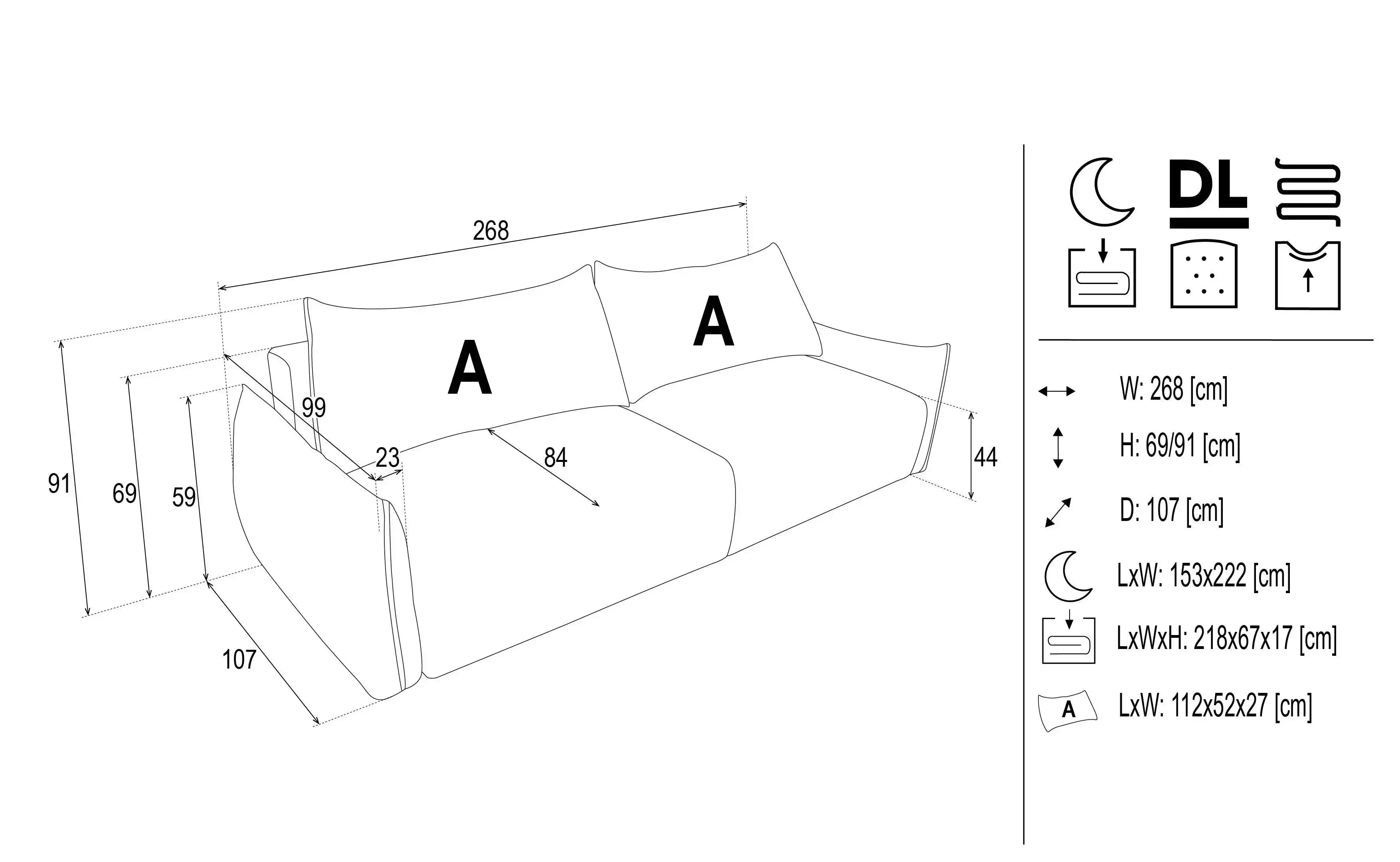 • Three seater sofa with integrated sofa bed function (DL mechanism)