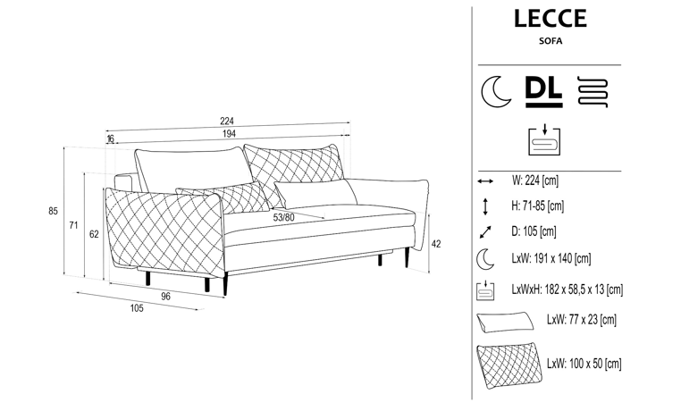 Designed for modern homes that need practical solutions without sacrificing comfort, the Lecce 3 Seater Sofa Bed combines generous seating with a reliable sleeping function. Its balanced proportions, supportive cushions and clean silhouette make it a versatile choice for everyday living. With an integrated DL mechanism and built-in storage, Lecce offers comfort during the day and a convenient sleeping space at night.