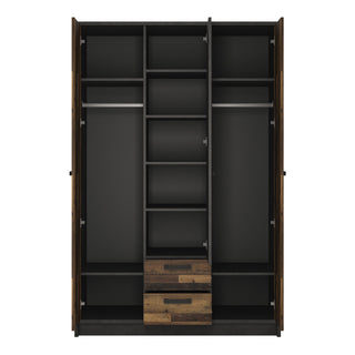 brooklyn 3 door wardrobe with 2 drawers in walnut and dark matera grey