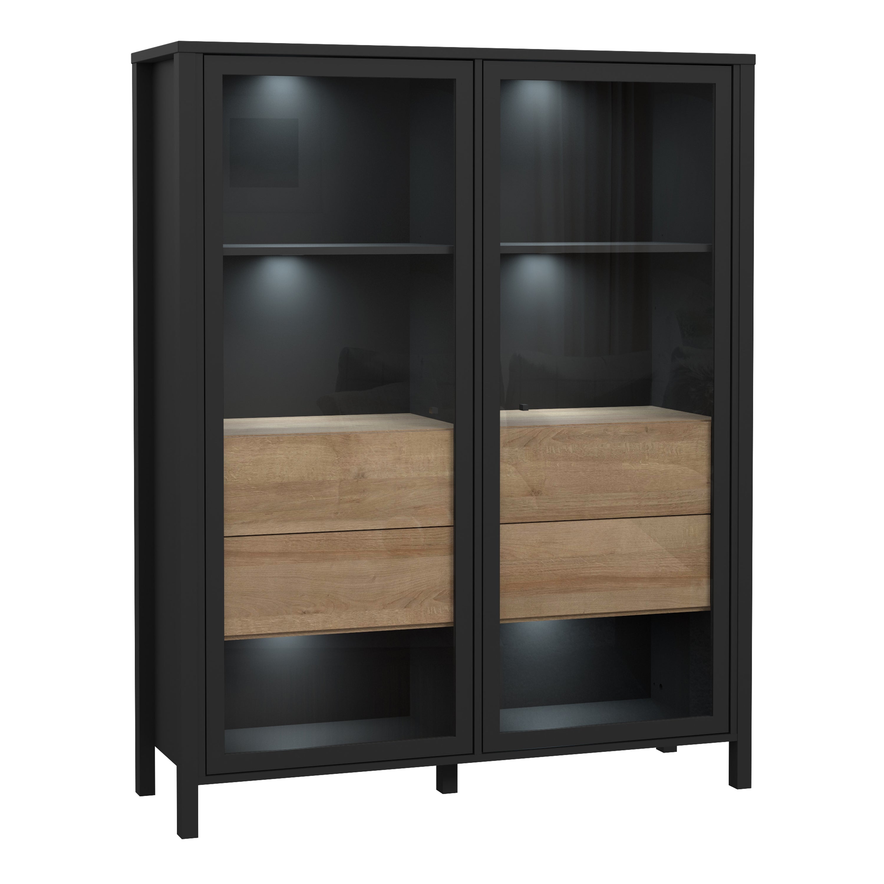 High Rock Extra Wide Display Cabinet In Matt Black/Riviera Oak