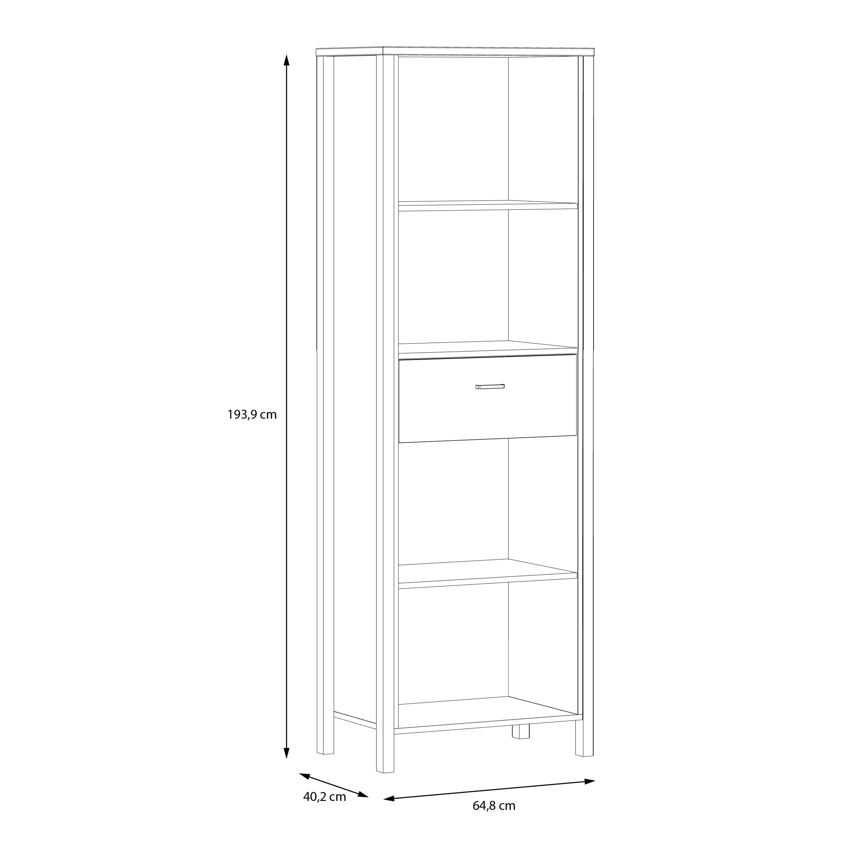 high rock, a captivating and contemporary collection which has a perfect blend of the riviera oak decor with deep black accents, this collection immediately captivates attention with its originality. the sleek black metal handles add a touch of elegance, while the tables boast robust metal legs in a frame-like design, contributing to a distinct loft character within the space. beyond its striking aesthetics, high rock prioritises functionality with its ingenious storage solutions. cabinets, chests of drawers, and display cabinets offer ample space to organise belongings, while the thoughtfully equipped tables come with practical drawers. this versatile collection effortlessly fits into any room, from the living room and dining area to the hall, youth room, or bedroom, adding a touch of sophistication and practicality to every corner of the home.