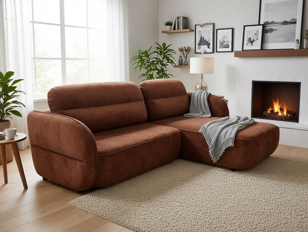 Niezależnie od tego, czy przyjmujesz gości, czy też spędzasz spokojny wieczór w domu, ta sofa z funkcją spania zapewnia zarówno komfort, jak i wygodę. Jej przestronna konstrukcja i pluszowe poduszki zapewniają dużo miejsca do siedzenia, a łatwy w użyciu mechanizm bez wysiłku przekształca ją w przytulne łóżko dla gości, którzy zostają na noc. Dzięki smukłej ramie, eleganckiej tapicerce i przemyślanym cechom konstrukcyjnym, narożna sofa z funkcją spania Baloo to nie tylko mebel, ale także wyraz stylu i wyrafinowania. Podaruj sobie luksus wszechstronności dzięki narożnej sofie z funkcją spania Baloo i doświadcz idealnego połączenia stylu i funkcjonalności w swoim domu.