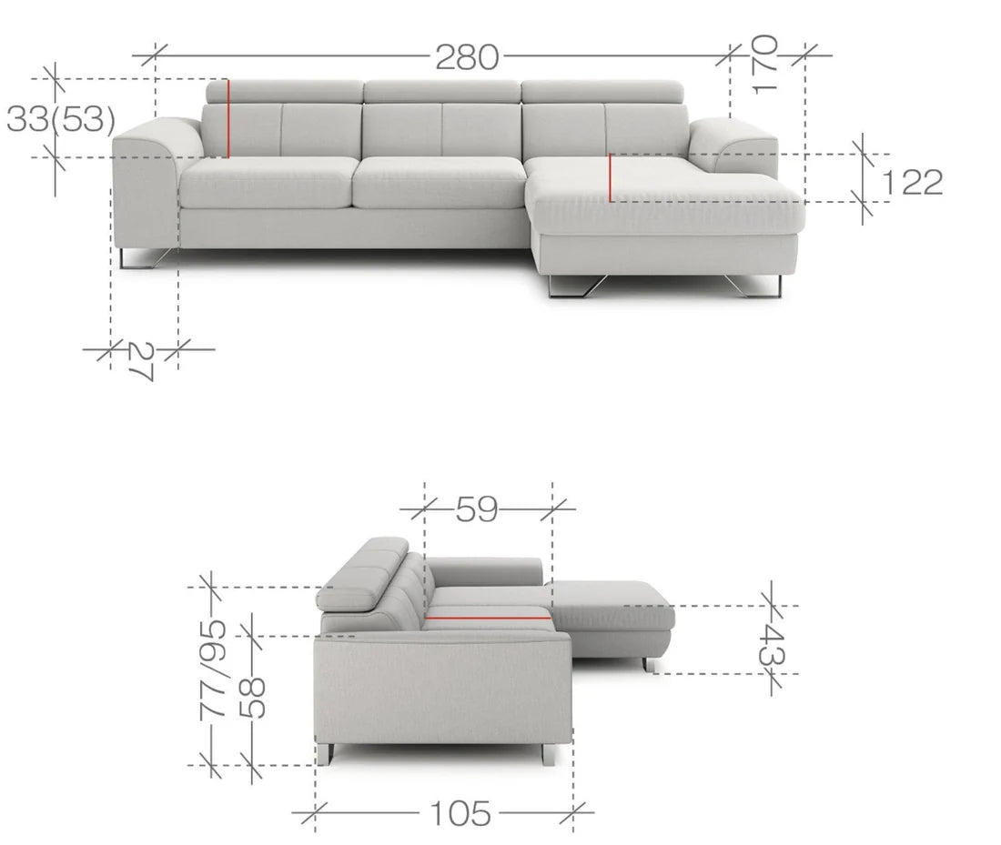 Wysoce elastyczna pianka i sprężyny zygzakowate zapewniają niezrównany poziom komfortu, dzięki czemu jest to idealne miejsce do relaksu lub zakwaterowania dla gości dzięki łatwej w obsłudze funkcji spania. Regulowane zagłówki oferują spersonalizowany komfort, pozwalając dopasować wypoczynek do własnych upodobań.