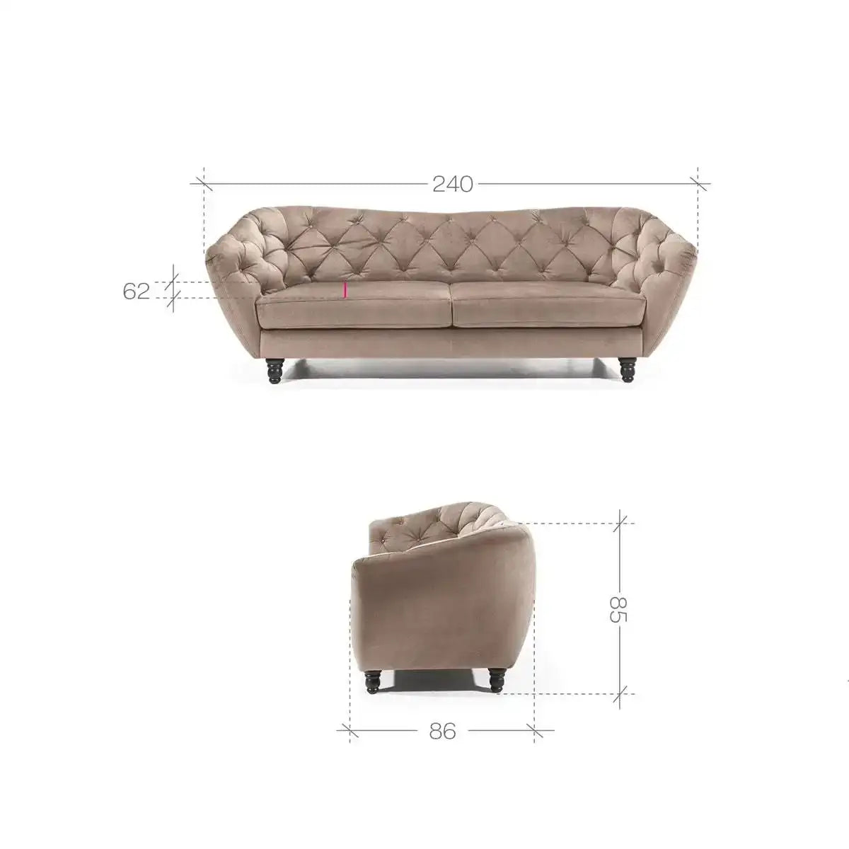 Bring a touch of sophistication to your office space or waiting area with the elegant design of the Venice 3 Seater Sofa. Elevate your space today with this timeless piece of furniture. The sofa on the picture is made of Queen velvet 42 fabric.